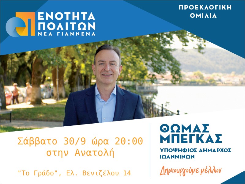 Το Σάββατο 30/9/2023 ο επικεφαλής της παράταξης μας ΕΝΟΤΗΤΑ ΠΟΛΙΤΩΝ ΝΕΑ ΓΙΑΝΝΕΝΑ , ο κ. Μπέγκας Θωμάς , θα πραγματοποιήσει ομιλία στο μαγαζί “Το Γραδο” διεύθυνση, Ελ.Βενιζέλου αρ. 14.
